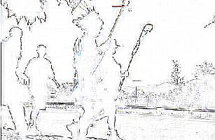 | Robertjohn and Cubby Lovato carry the Unification Staffs down Hwy 76 to San Luis Rey Mission. Cubby's talk preceeded this "artistic vision" photo. |