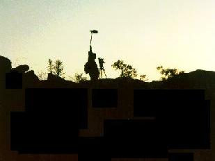 Day 1 - Preparing for the first steps of the walk, Steve Cesina (left) and Charles P. White (right) tie the flag to a mast. |