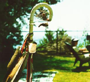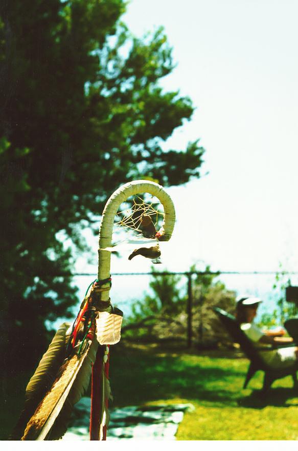 Even the staff needs to rest. This is the Unification Staff. All tribes are asked to attach something to this staff as it makes its way to Sacramento. You will notice from the pictures that it continues to change, as do the walkers, throughout this journey. Summerland, California |