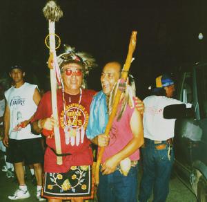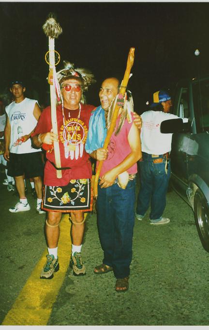 Robertjohn greets Wonono Rubio, the Vice Chairman of the Coastal Band of the Chumash People, as the walkers arrive in Santa Barbara. Full size photo: sixtn-16.jpg @ 47 Kb |