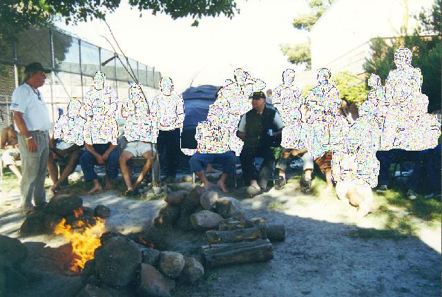The inmates are blurred out in order to abide by current regulations. Also pictured, Gary Fourstar (centered, seated). |